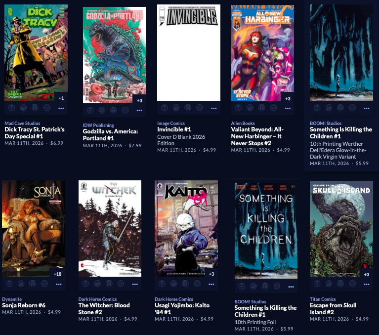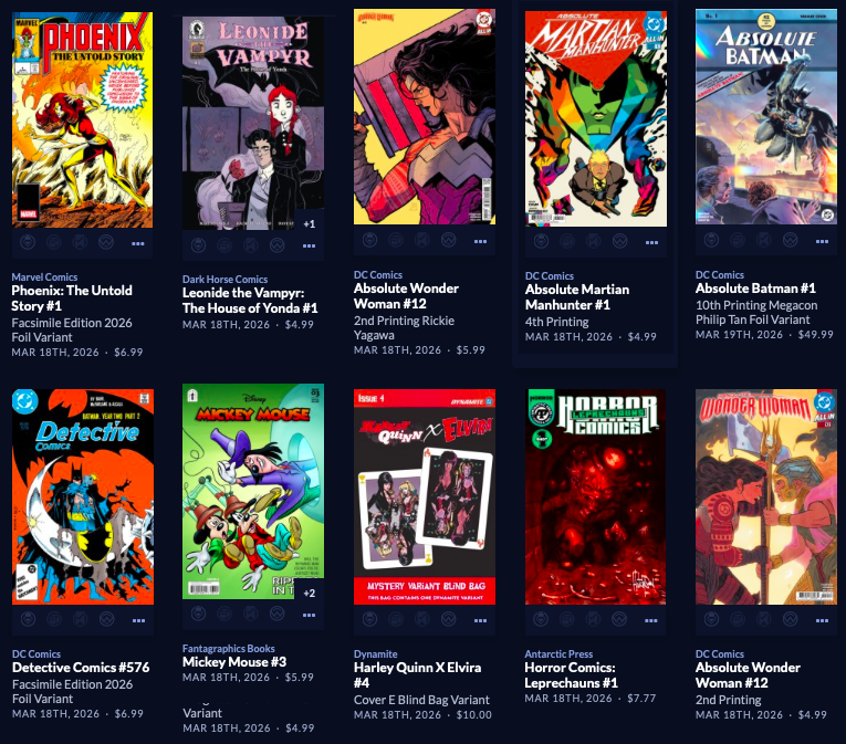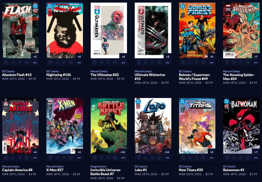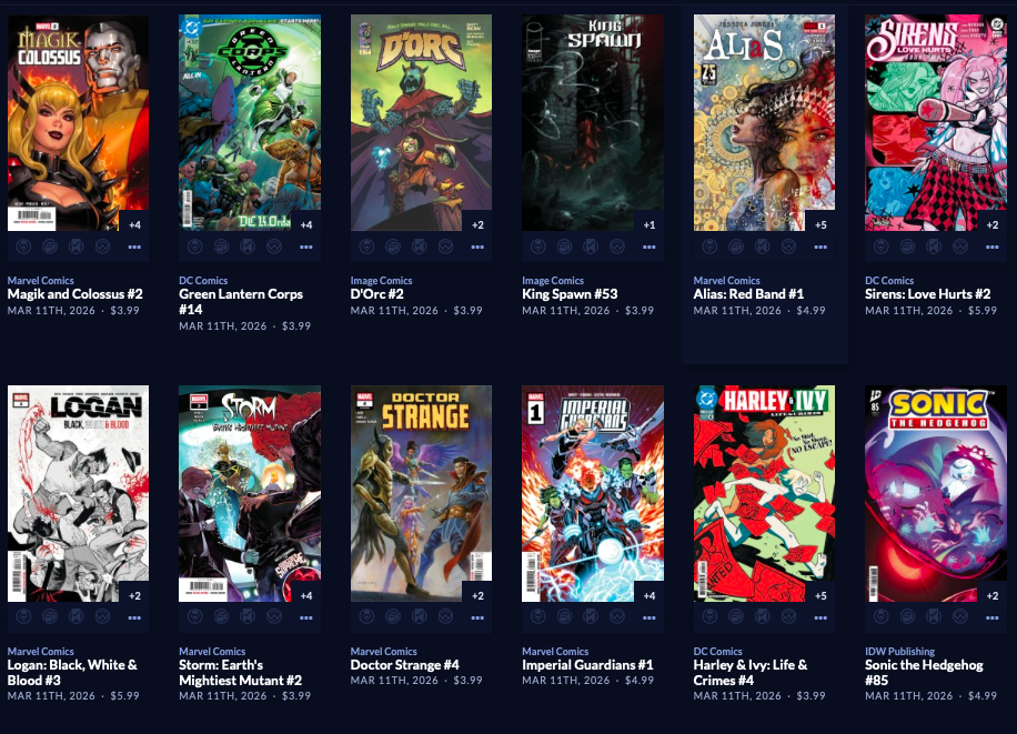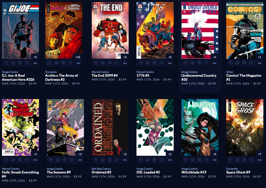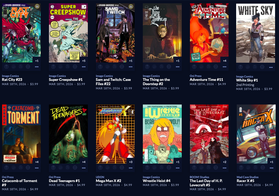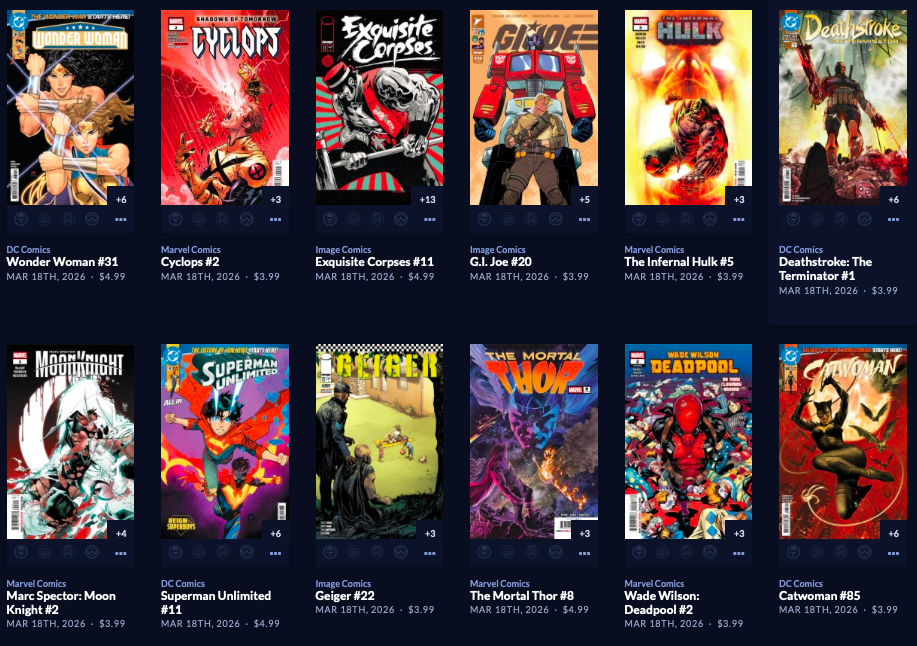 Thanks to  League Of Comic Geeks for this week’s images, which are in some unusual, non-alphabetical order, and 6 across. Use the list, and MAYBE the pictures will be useful. Again, I do not have time to sort the images into publisher groups.