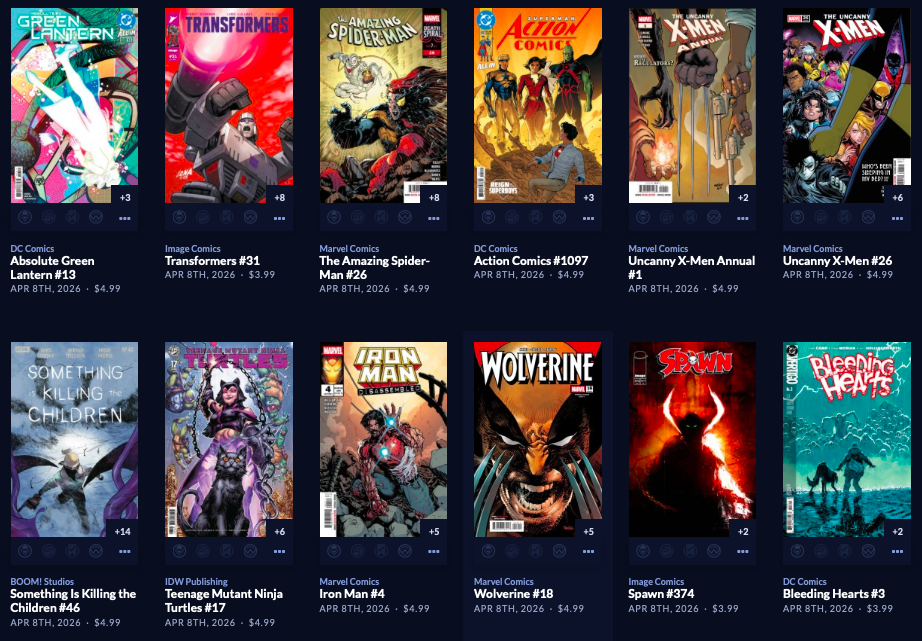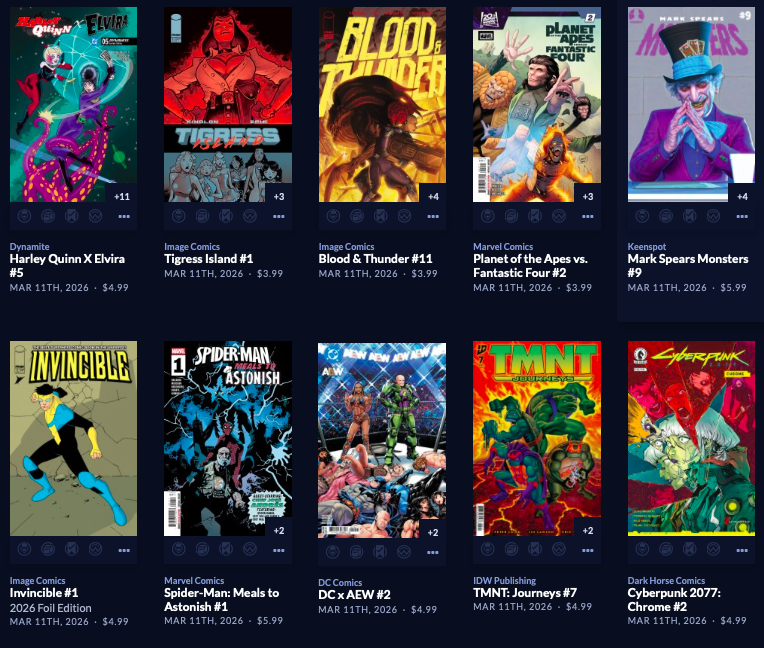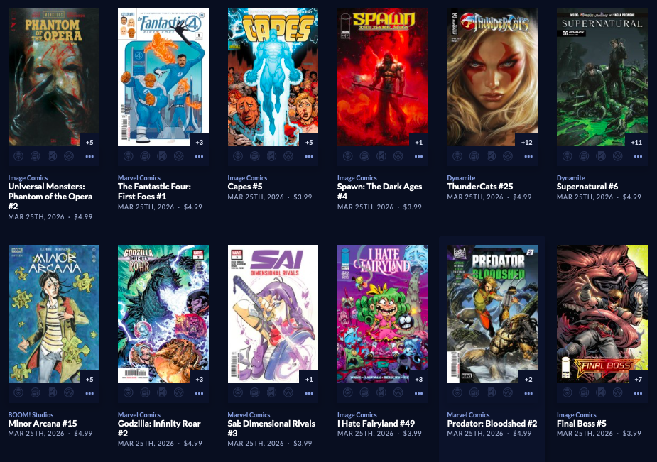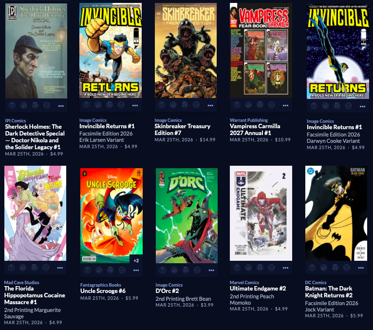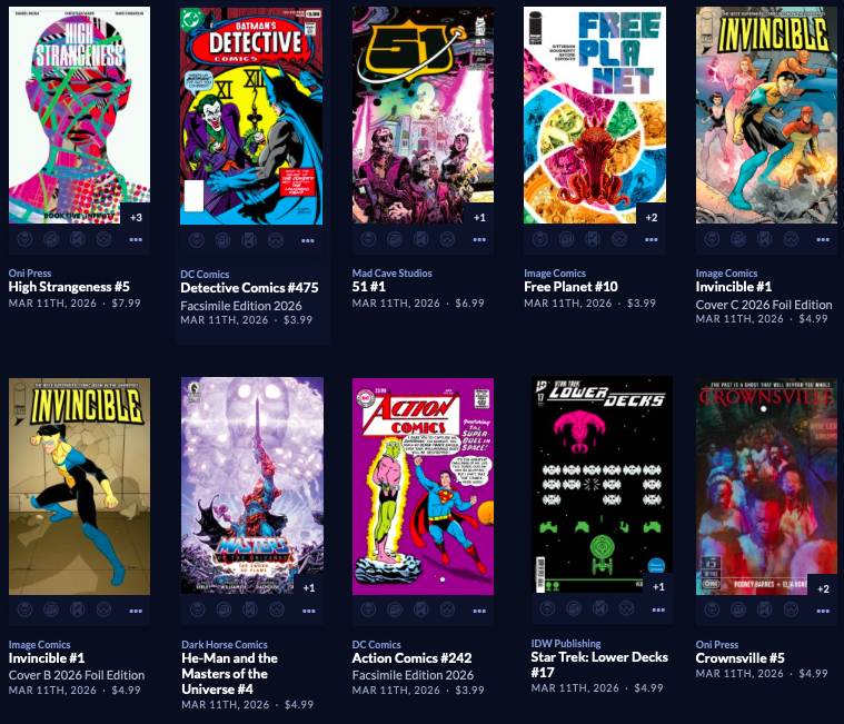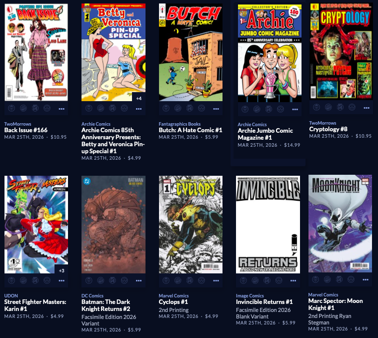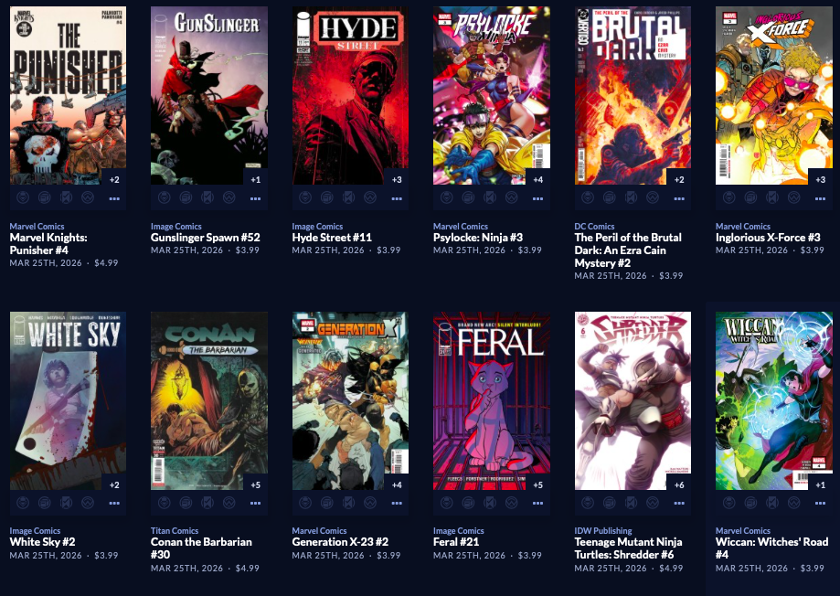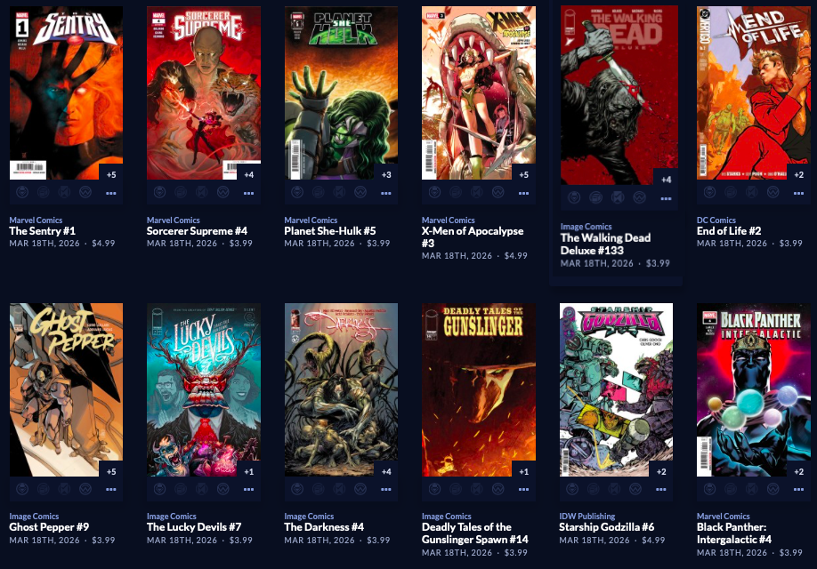 Thanks to  League Of Comic Geeks for this week’s images, which are in some unusual, non-alphabetical order, and 6 across. Use the list, and MAYBE the pictures will be useful. Again, I do not have time to sort the images into publisher groups.