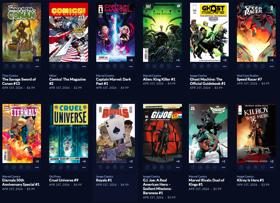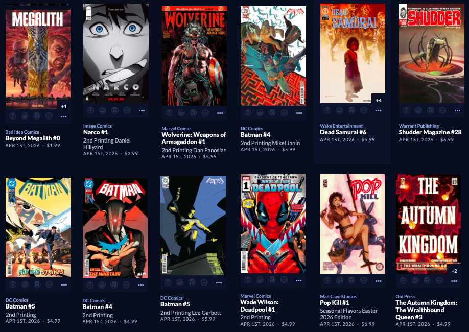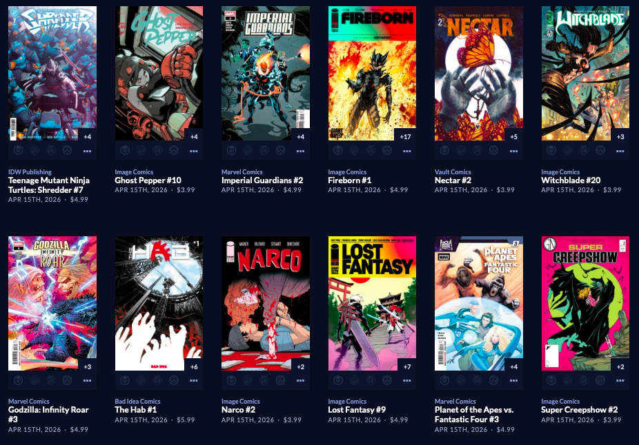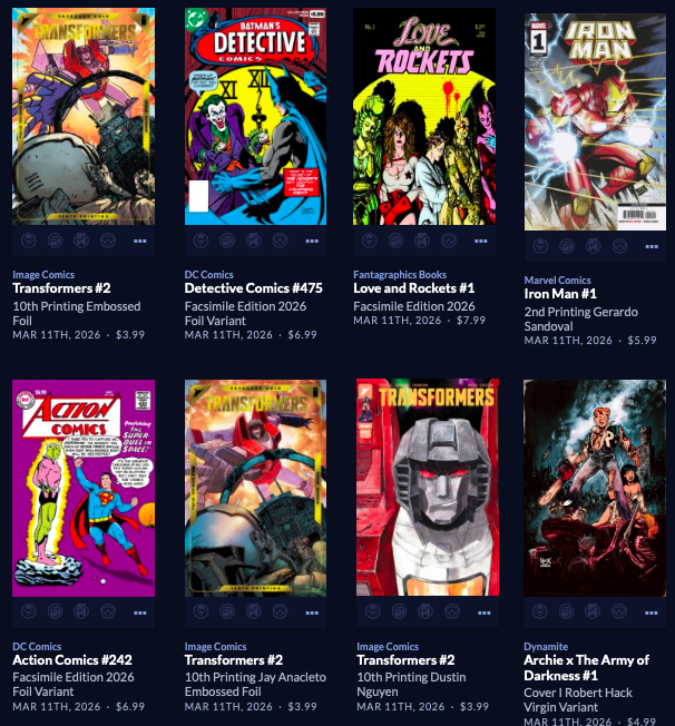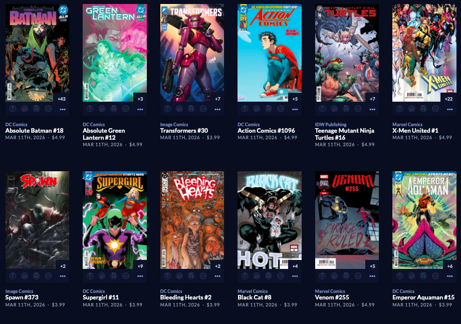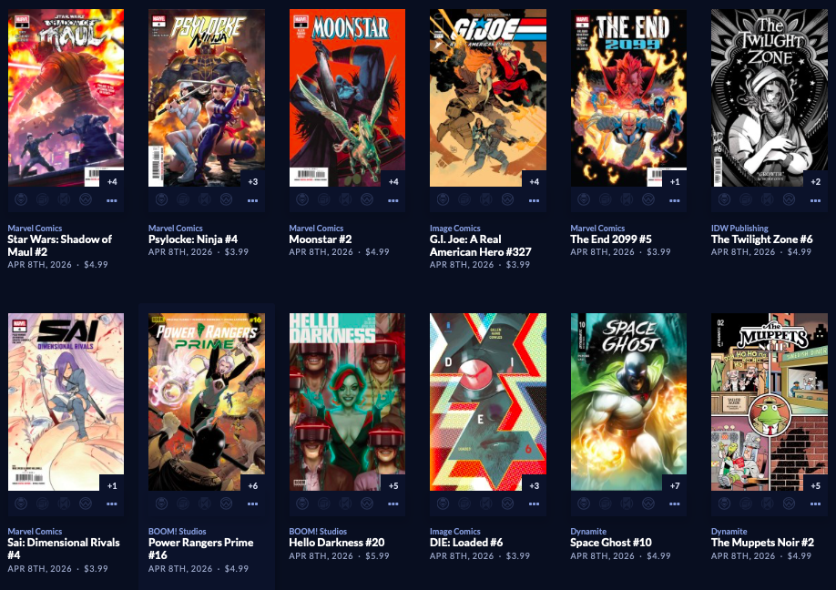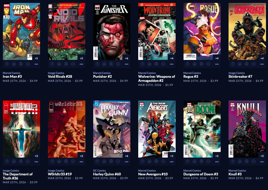Thanks to  League Of Comic Geeks for this week’s images, which are in some unusual, non-alphabetical order, and 6 across. Use the list, and MAYBE the pictures will be useful. Again, I do not have time to sort the images into publisher groups.