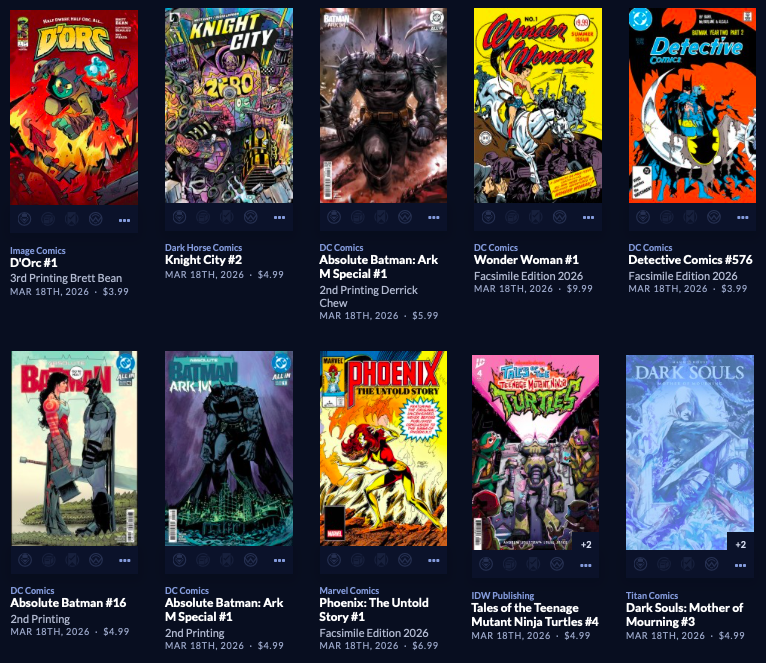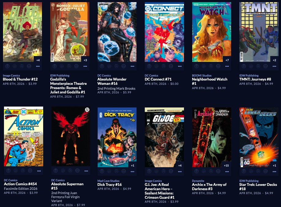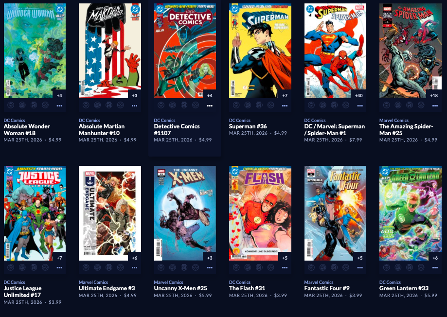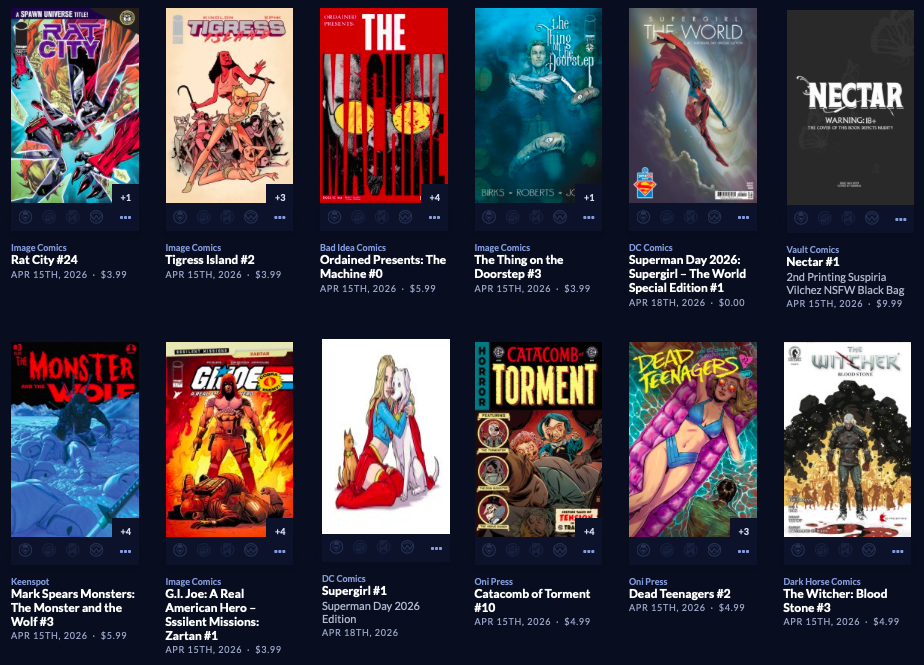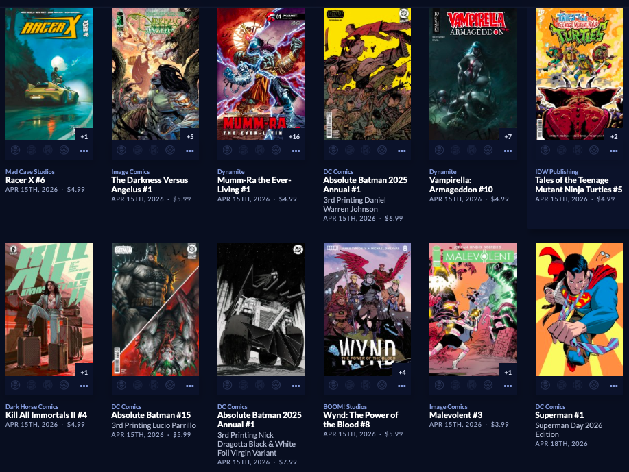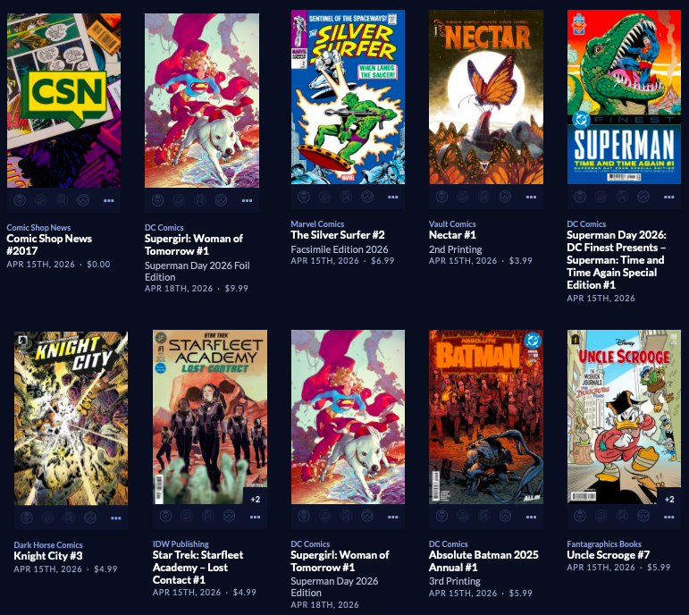 Large week, with back up to  212 facings. Absolute Batman #19 is here along with a reprint of the popular Annual from last year, along with a big week of 64 new this week, AND a couple dozen Superman Day (this Saturday 4/18) comics and other items, both FREE and NOT FREE.  Marvel is the smallest segment this week, with Image and the Other Guys shipping in 110 covers! Hope that does it for you. It does it for me!