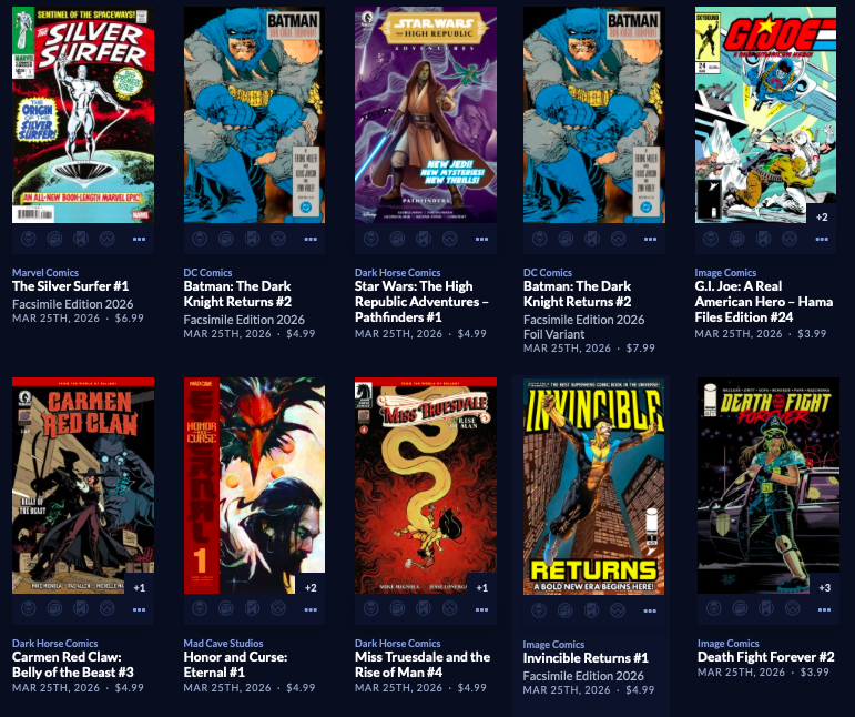 Wednesday is still New Comic Day, for at least one more week. Watch this space and our Facebook page for the latest news about the rest of the month, season, year, millennium, etc. (And text messages from 5-Star.) The complete list is found below. If you want to know about the next sale or store event, or whether or not WE ARE EVEN OPEN click here. Sign in here to get an email reminder for ALL sales and other events. Also, you can go to   fb.fantasybooksandgames.com and you’ll be taken to our Facebook page. We also use our in-store 5-Star Rewards system to text similar announcements to your phone.